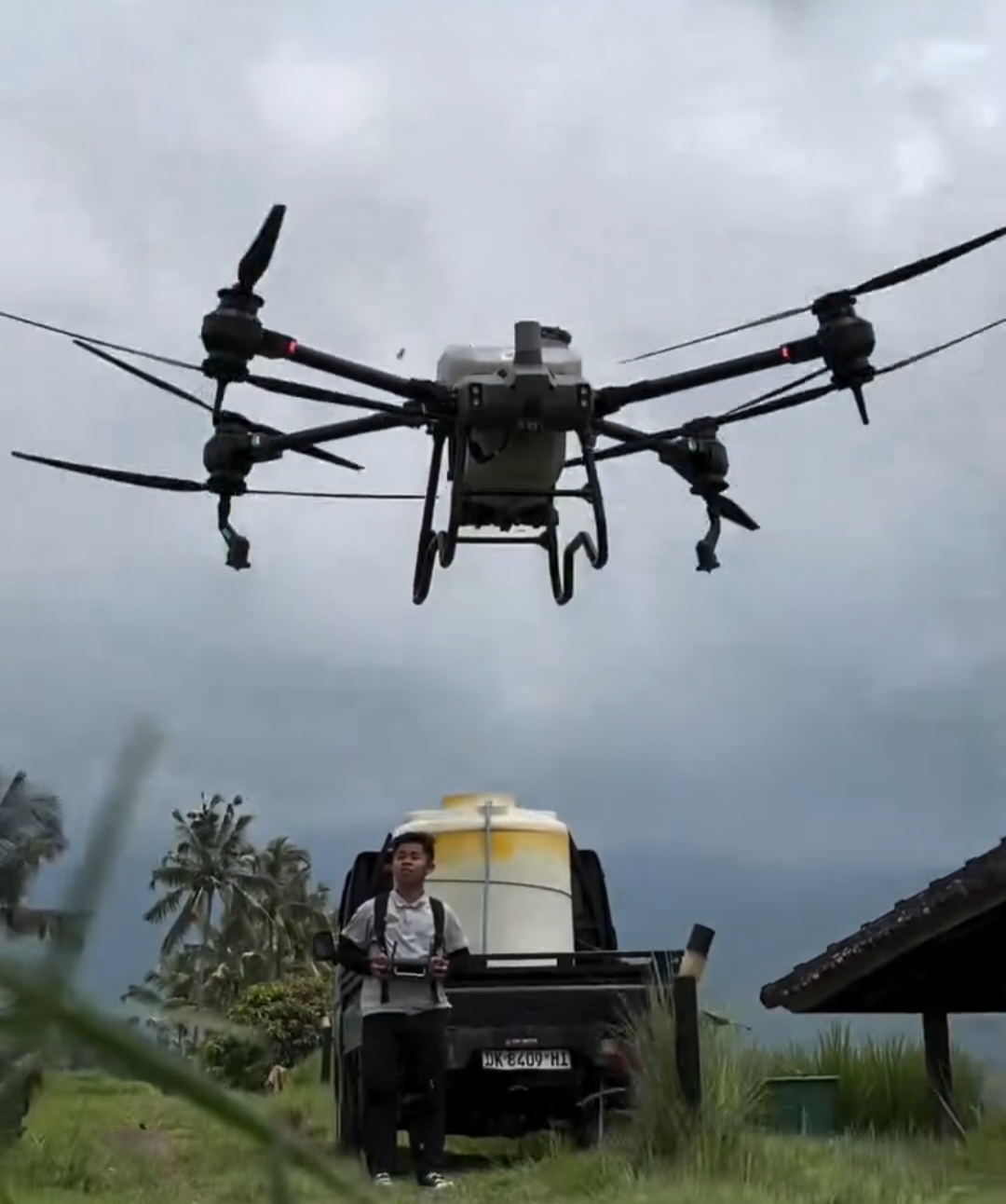Drone raksasa pemberian dari Bank Indonesia (BI) kepada pengelola Daya Tarik Wisata (DTW) Jatiluwih, dimanfaatkan secara rutin ke beberapa titik sawah, fungsinya untuk menjatuhkan pupuk organik ke wilayah yang sulit dijangkau petani.