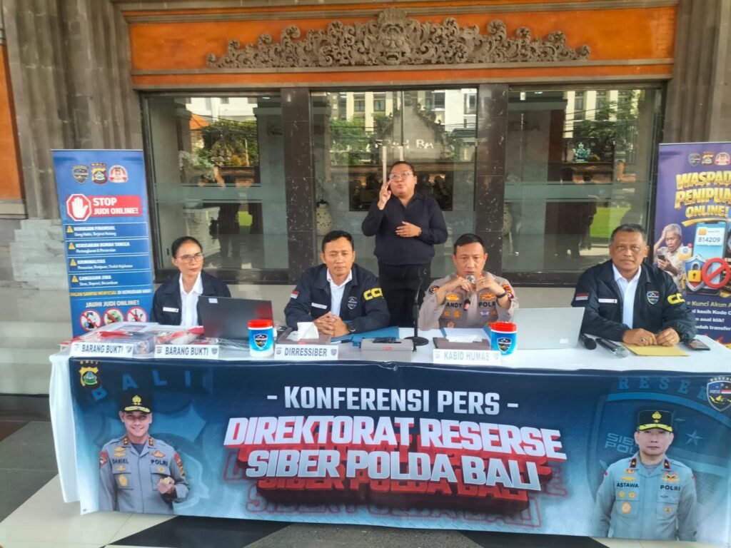 “Pengungkapan ini berawal dari Patroli Siber dan penyelidikan mendalam (undercover) tim Ditressiber Polda Bali,” ujar Kombes Pol. Aszhari Kurniawan, di dampingi Kabid Humas Kombes Pol. Ariasandy S.I.K., pada konferensi Pers, Rabu (29/4/2026) di Loby Mapolda Bali.