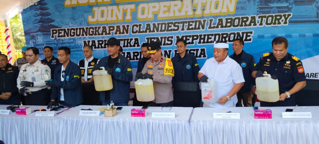 “Kami mengadakan operasi yang berlangsung pada Kamis hingga Jumat (5 s.d. 6 Maret 2026), hingga akhirnya mengamankan dua warga negara Rusia inisial NT dan TS. Kami amankan pula, sejumlah bahan yang diduga digunakan untuk memproduksi narkotika sintetis jenis mephedrone. Pengungkapan narkotika mepedrone ini yang terbesar 7,3 Kg. Mereka kerap berpindah-pindah lokasi tinggal,” ujar Brigjen Pol. Roy Hardi Siahaan, S.I.K., S.H., M.H., selaku Plt. Deputi Pemberantasan BNN RI, dalam jumpa pers di TKP, pada Sabtu (7/3/2026).