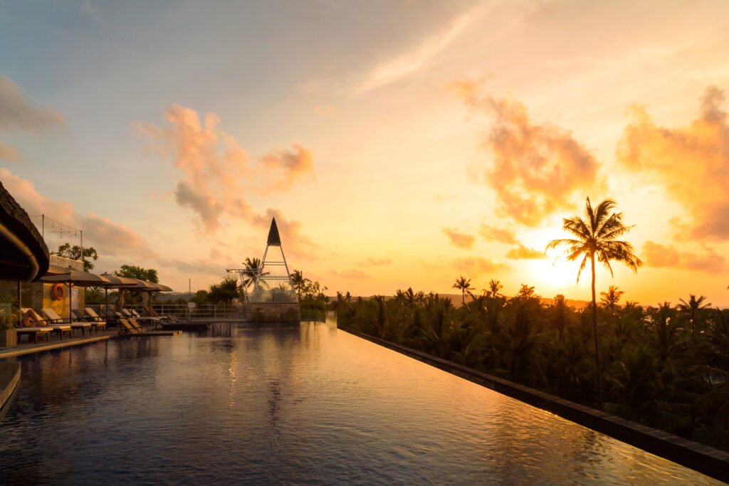 Hotel ini juga dilengkapi dengan berbagai fasilitas unggulan yang dirancang untuk meningkatkan kualitas pengalaman menginap, termasuk rooftop infinity swimming pool yang menawarkan panorama sunset yang ikonik, restoran dengan pilihan hidangan lokal dan internasional, pusat kebugaran, serta layanan resepsionis 24 jam yang siap memberikan pelayanan terbaik bagi setiap tamu.