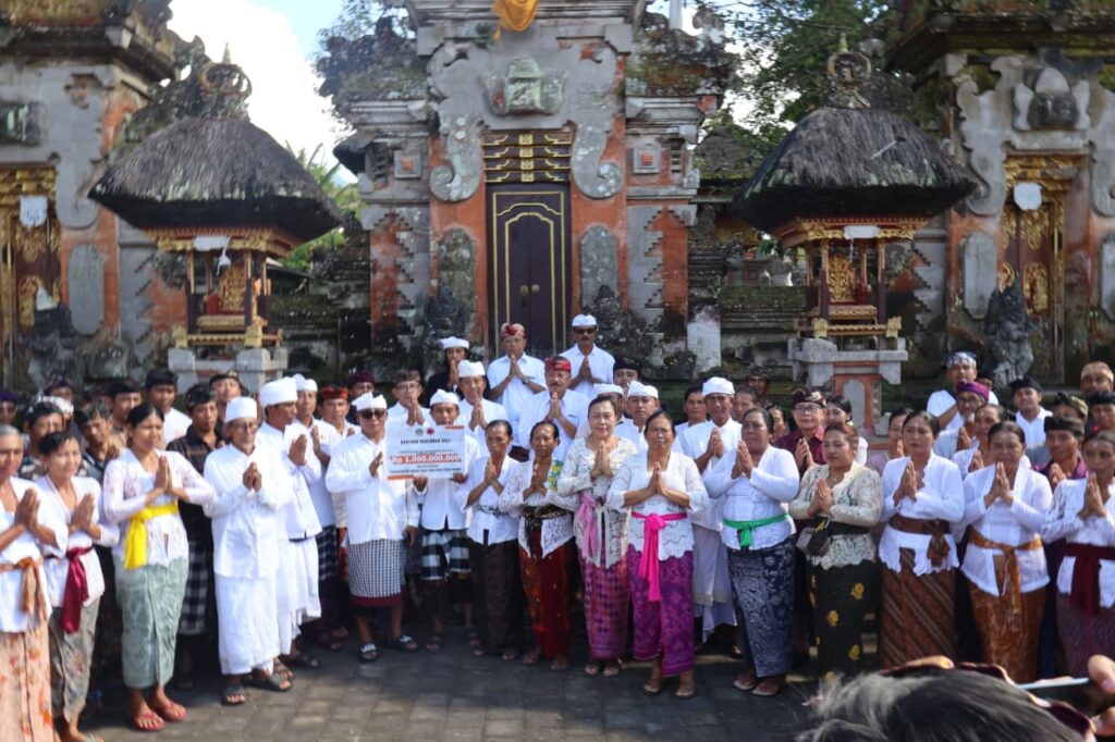 Bantuan secara simbolis senilai Rp1 miliar diserahkan oleh Gubernur Bali Wayan Koster, dalam perbaikan empat bangunan yang rusak di Pura Luhur Pucak Tinggah, Banjar Angseri, Desa Angseri, Kecamatan Baturiti, Kabupaten Tabanan, Senin (30/3/2026).