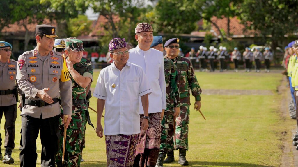Ket Foto Ist: Gubernur Koster bersama Kapolda Bali meninjau apel gelar pasukan operasi kepolisian terpusat Ketupat 2026, di Lapangan Iptu Soetardjo Mako Brimob Tohpati, Denpasar, Kamis (12/3/2026).