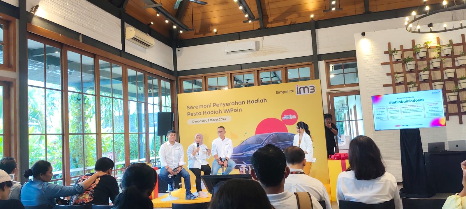 Ket Foto: Suasana jumpa media Indosat bersama media, dalam mengulas panggilan spam dan seremonial pemberian hadiah pemenang mobil BYD M6, Kamis (5/3/2026).
