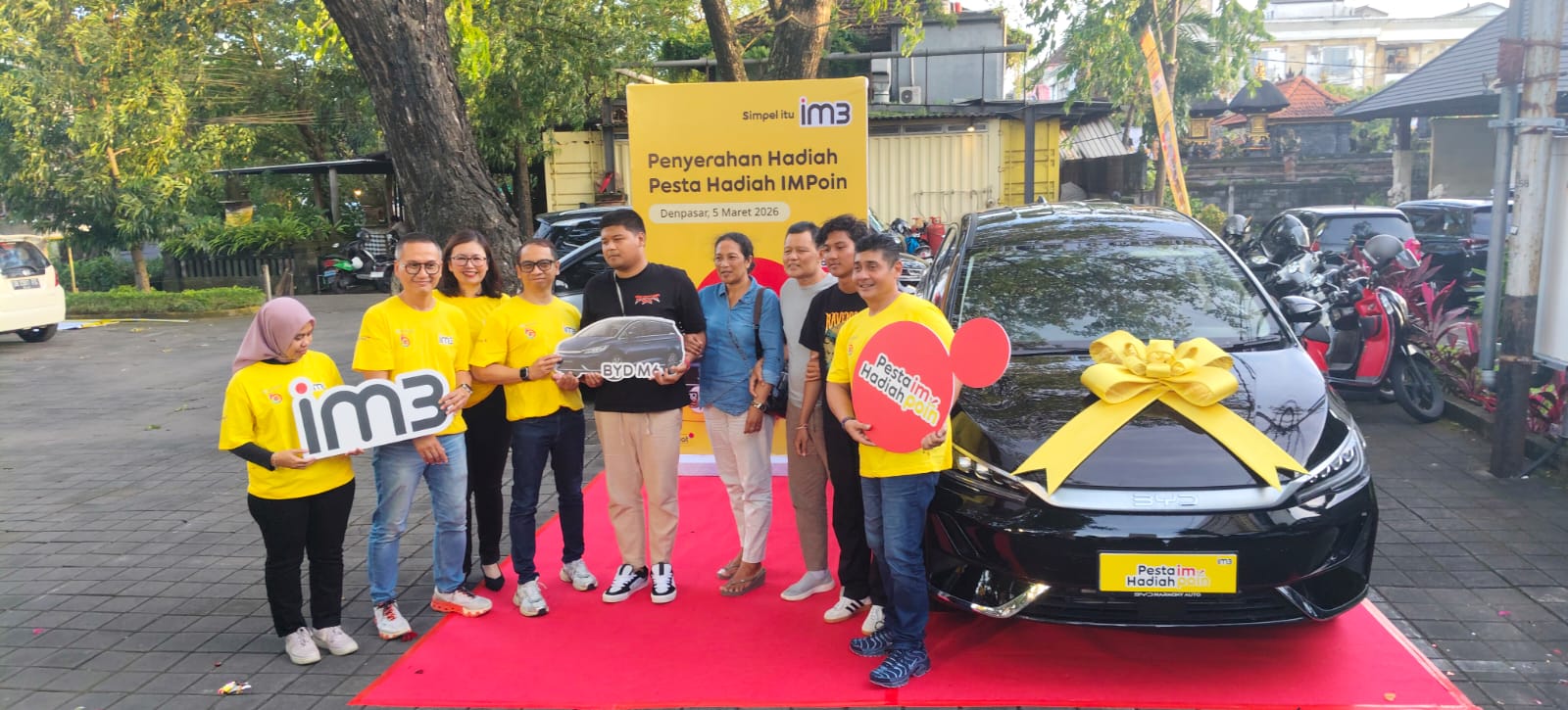 Penyerahan mobil dilakukan disela-sela jumpa pers dengan wartawan, penerima undian mobil ini adalah masyarakat di Bali yang memanfaatkan iMPoin. Undian sebelumnya meski tertutup, tapi disaksikan instansi kepolisian, dinas-dinas terkait dalam menentukan pemenang mobil BYD M6.
